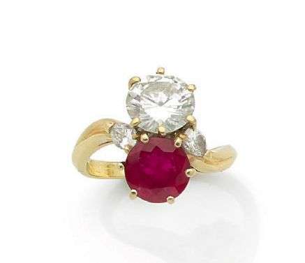 A ruby, diamond and gold ring