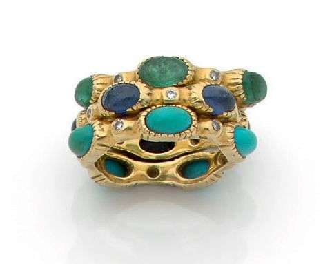 Cabochons de turquoises, saphirs, émeraudes et diamants