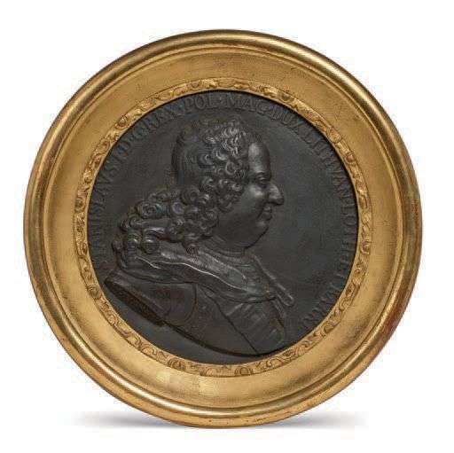 Médaillon circulaire en bronze à l'effigie du profil droit de Stanislas Leszcynski (1677 - 1766), roi de Pologne et duc de Lorraine. Le pourtour portant l'inscription «STANISLAS I.D.G. REX. POL. MAC. DUX LITH VAN. LOTH. ET BARRI». Signé en bas à gauche.