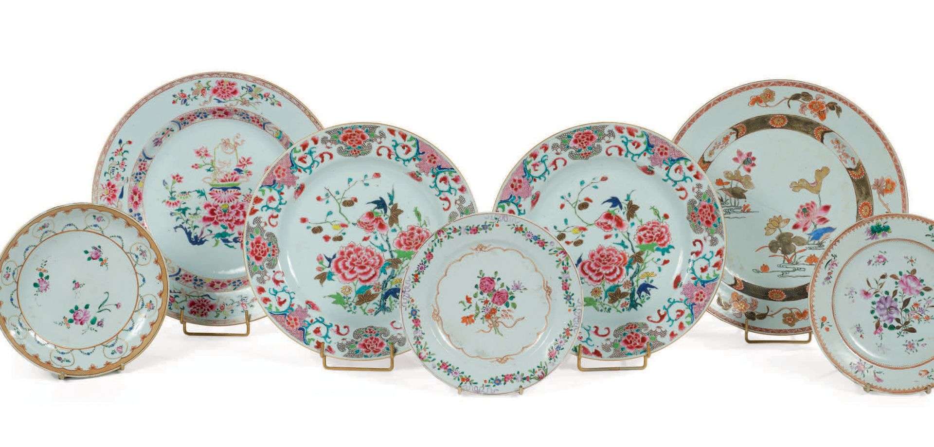 - Deux assiettes en porcelaine émaillée polychrome à décor floral.