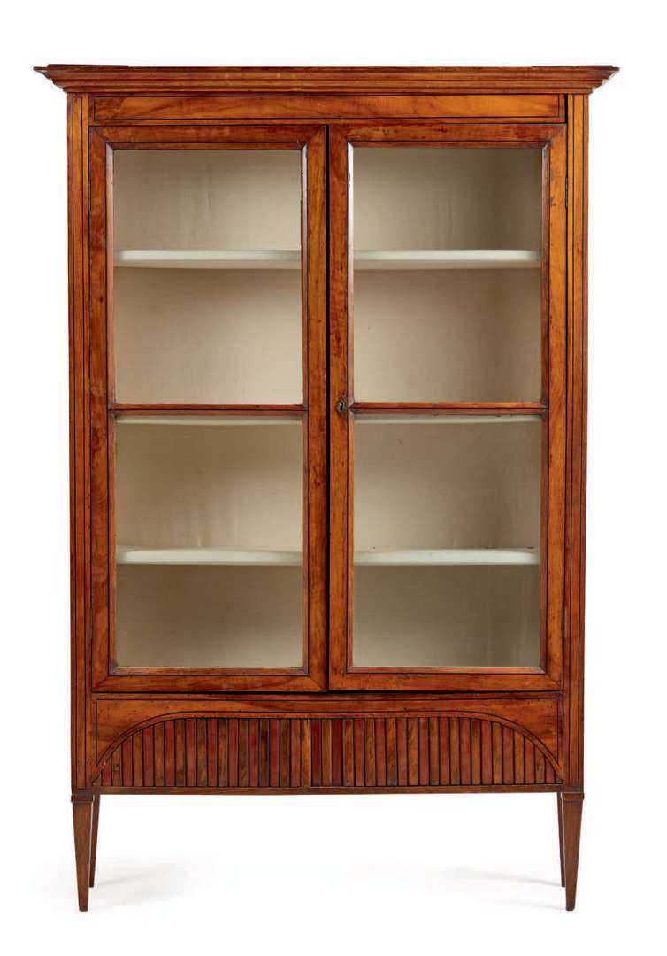 ARGENTIER ou bibliothèque ouvrant à deux vantaux vitrés en partie haute. Une large ceinture en partie basse ouvant par deux vantaux dévoillant un rangement. France, début du XIXe siècle.
