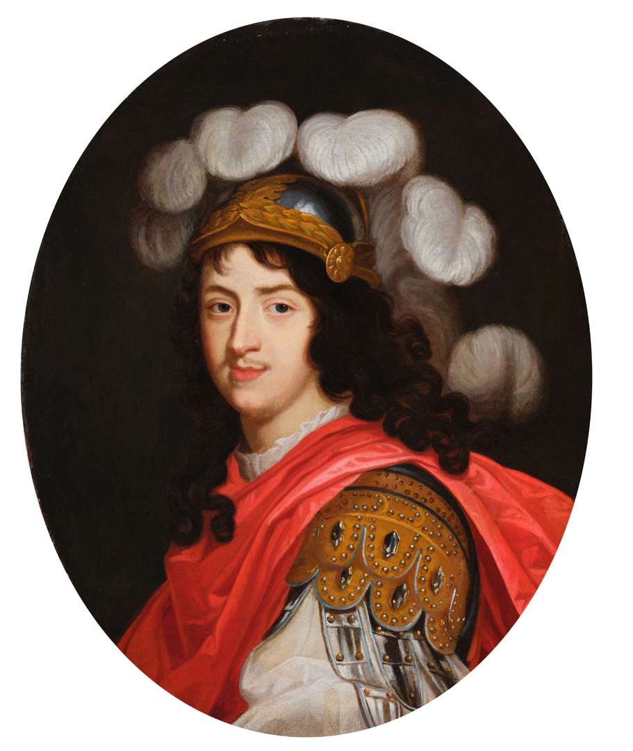 À cette époque, le Palais est habité par le cardinal Mazarin (1602 - 1661) et ses neveux, dont Olympe et Marie Mancini qu’il loge depuis quelques années. Au moment de la Fronde (1648 - 1653), il accueille également la reine Anne d’Autriche (1601 - 1666) et ses deux enfants, Louis et Philippe. Nous savons par ailleurs que le futur roi nourrit quelque temps une véritable tendresse pour Olympe, en l’honneur de qui il fait donner cette cavalcade de 1656. Image inédite, Louis XIV est présenté pour l’une des toutes premières fois en souverain éclatant. À l’aube de sa grandeur, le roi paraît richement vêtu d’un costume fait de joyaux incrustés dans un brocart, agrémentés de lambrequins d’où ressortent les manches amples d’une chemise souple. Son chef lui, arbore un casque d’argent à feuillages d’or orné de larges plumes blanches. Offert à l’un des vainqueurs de la Cavalcade, le