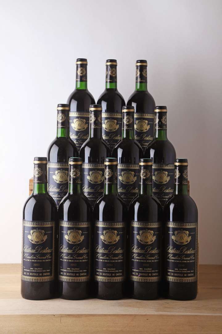 12 B CHÂTEAU DESTIEUX (Caisse Bois d'origine) (T.L.B. ou mieux) - 1990 - GC Saint-Emilion