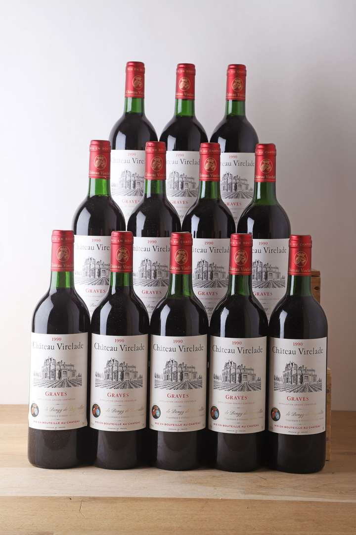 12 B CHÂTEAU VIRELADE Rouge (Caisse Bois d'origine) (T.L.B.- ou mieux) - 1990 - Graves