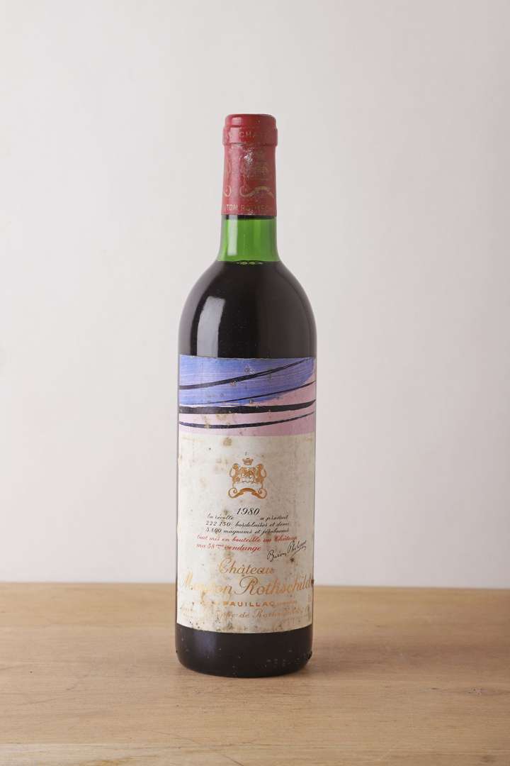 1 B CHÂTEAU MOUTON ROTHSCHILD (T.L.B| e.t.h| c.a. côté| contre étiquette avec pass USA) - 1980 - GCC1 Pauillac