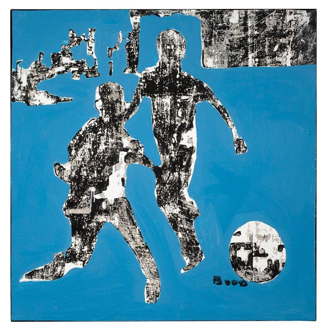 Goudron, acrylique et collage sur toile, signé en bas à droite