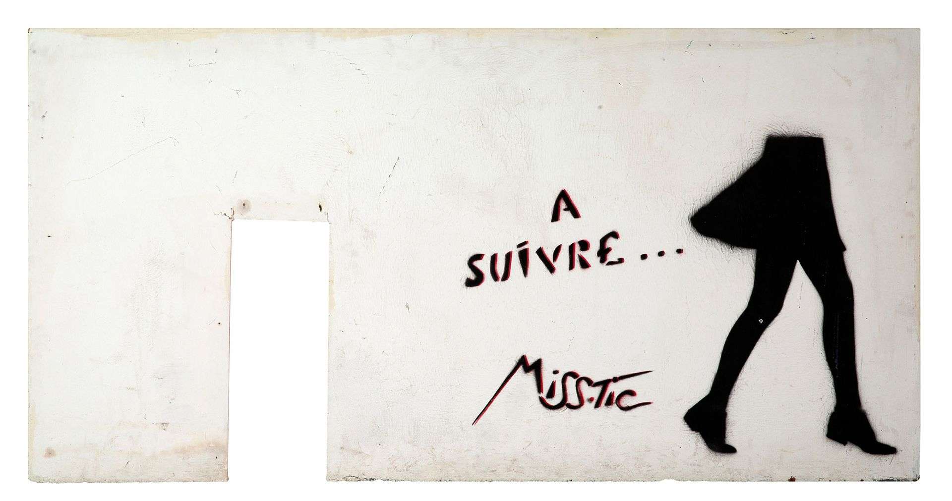 Pochoir sur panneau de bois peint, signé dans le motif