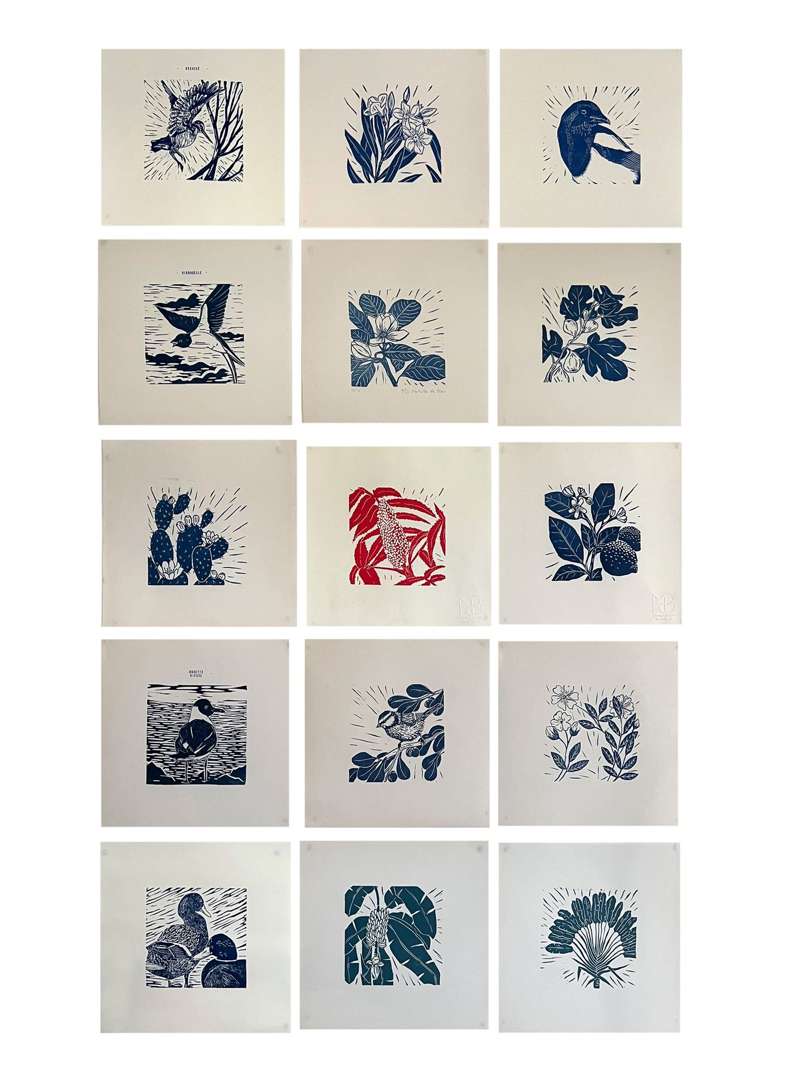 Ensemble de 15 linogravures, signées et marquées d'un tampon sec
