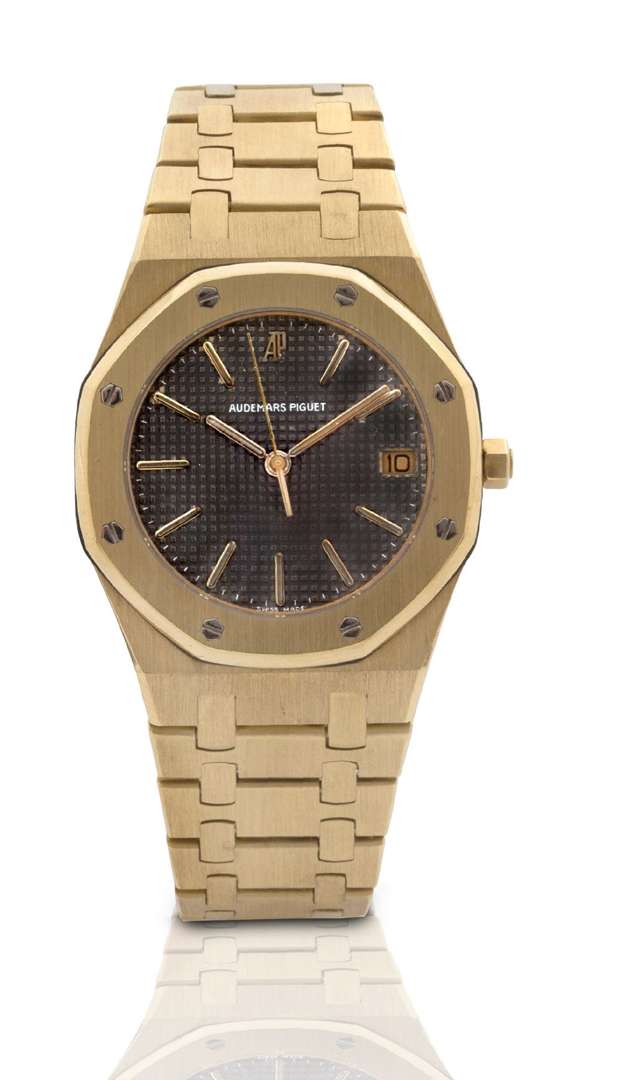 Cadran « tapisserie » gris foncé avec index bâtons appliqués et aiguilles luminescentes, date à guichet et trotteuse centrale
