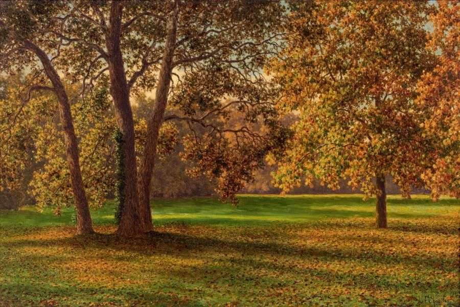 Automne à Bagatelle, Paris Huile sur toile, signée en bas à droite et titrée au dos 55 x 82 cm - 211/2 x 321/4 in. Oil on canvas, signed lower right, titled on reverse Provenance: Acquis au début du XXe siècle par une famille d'industriels, conservé depuis par héritage Collection privée, France