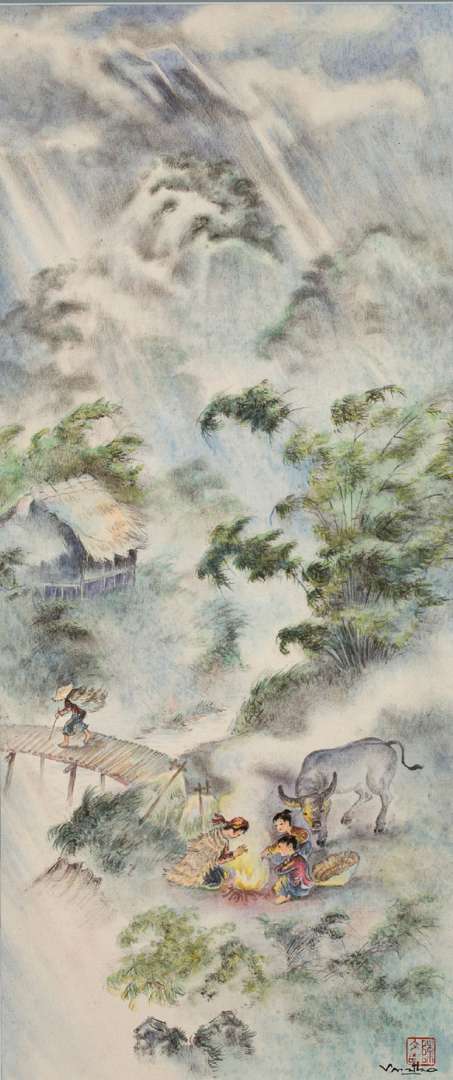 1982, Salon-de-Provence, Centre Municipal d'Animation Culturelle, Peintures sur soie, Văn Thọ, Association salonaise d'Aide aux réfugiés du Sud-Est asiatique (25 novembre - 9 décembre), lot 27