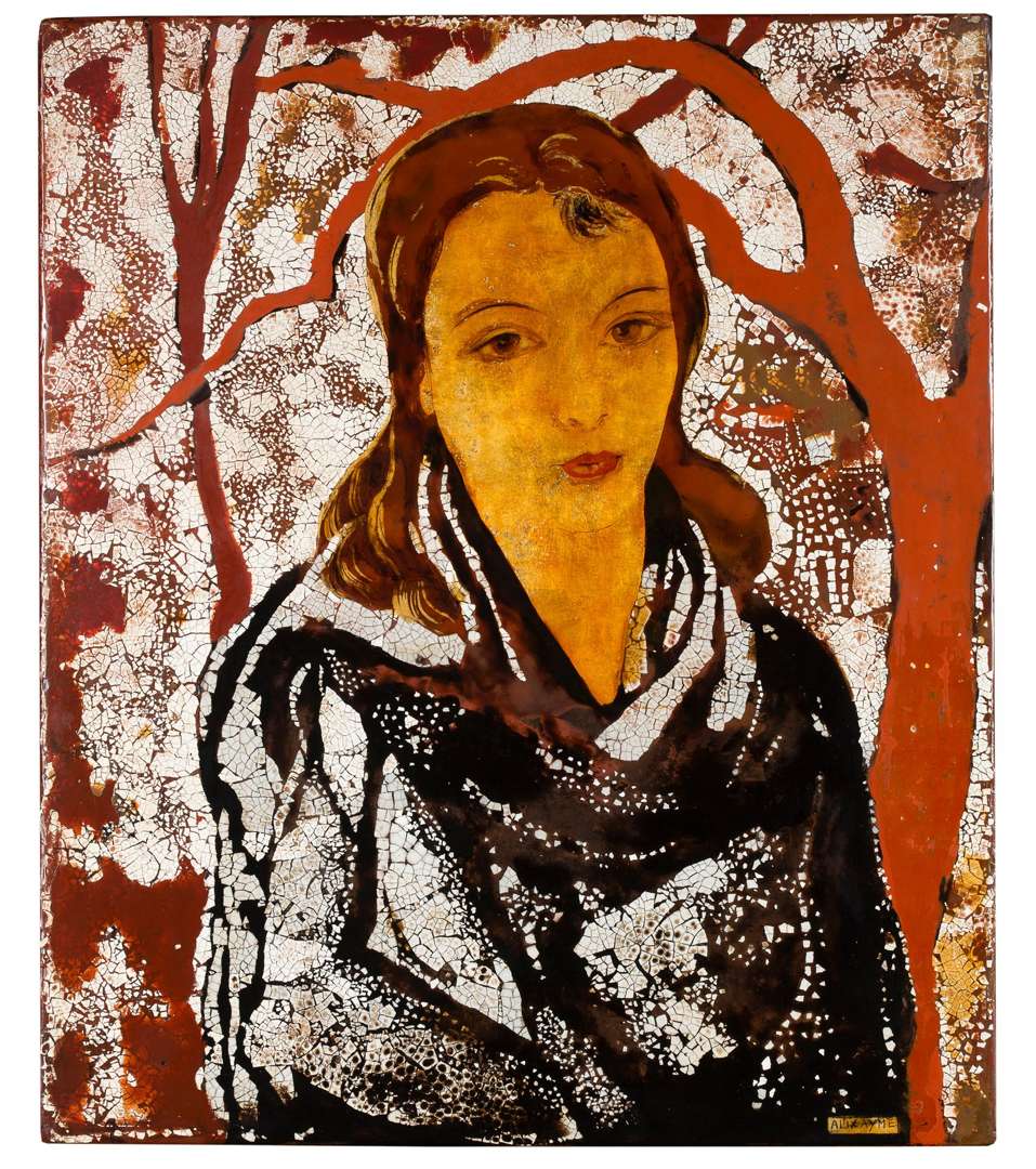Laque, coquille d'OEufs et rehauts d'or, signée en bas à droite