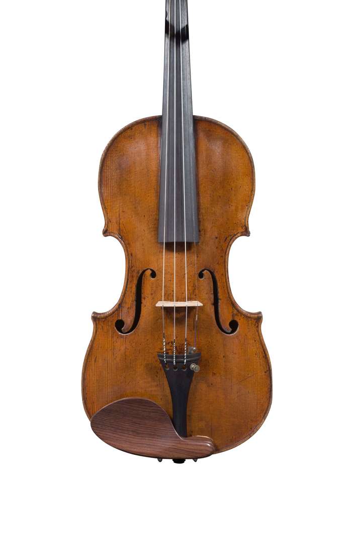 Différentes restaurations sur la table dont cassure d'âme sans pièce d'âme, petite déformation sur l'éclisse en bas à gauche, différentes cassures sur les éclisses, petite fente à droite dans le C sur le fond, petite fente sur la tête 355 mm sur le fond
