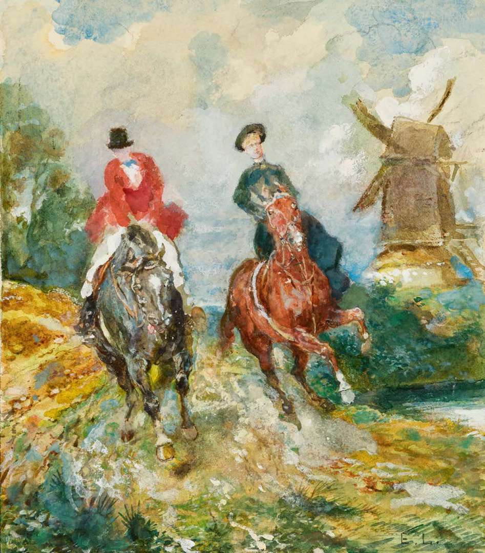 Couple de cavaliers au galop