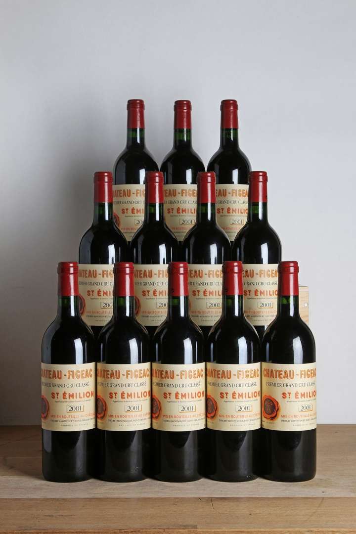 12 B CHÂTEAU FIGEAC (Caisse Bois d'origine sale) (e.f.s. légères| 1 c.l.a. bas de jupe) - 2001 - GCC1B Saint-Emilion