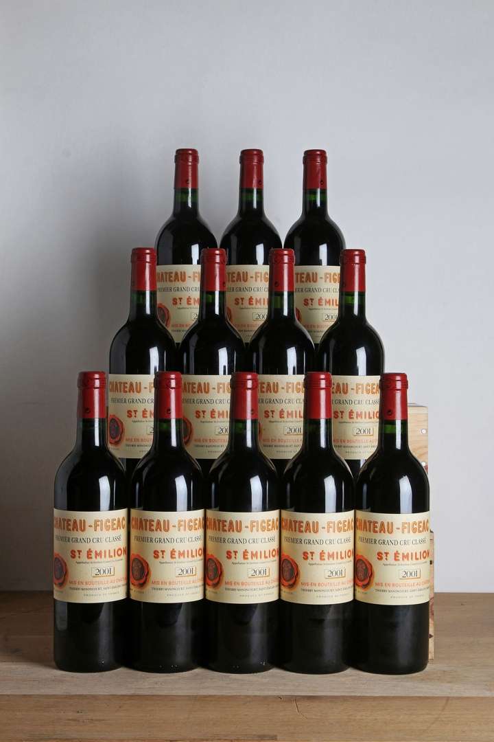 12 B CHÂTEAU FIGEAC (Caisse Bois d'origine sale) (e.f.s. légères) - 2001 - GCC1B Saint-Emilion