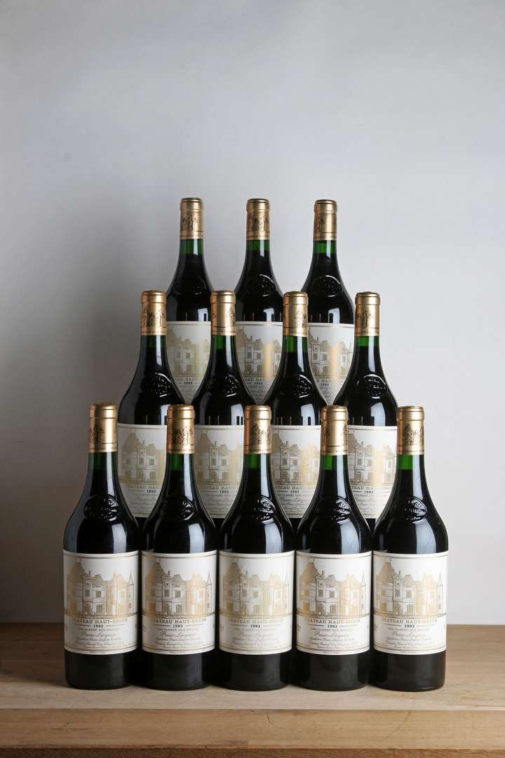 12 B CHÂTEAU HAUT-BRION (Caisse Bois d'origine avec pavillon supérieur abimé) (3 e.t.h. légères et 1 e.a.) - 1993 - GCC1 Graves