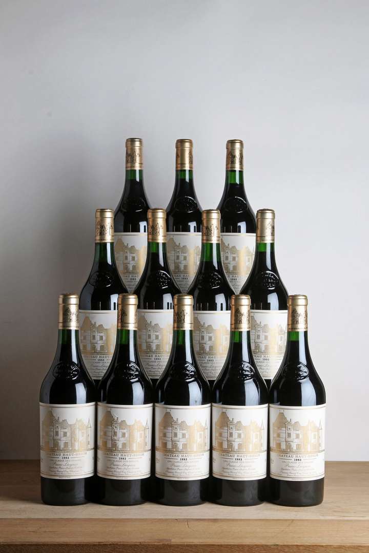 12 B CHÂTEAU HAUT-BRION (Caisse Bois d'origine avec pavillon supérieur abimé) (4 à 2| 1 à 2,8 et 1 à 3 cm| 1 e.t.h. et 2 e.a.) - 1993 - GCC1 Graves