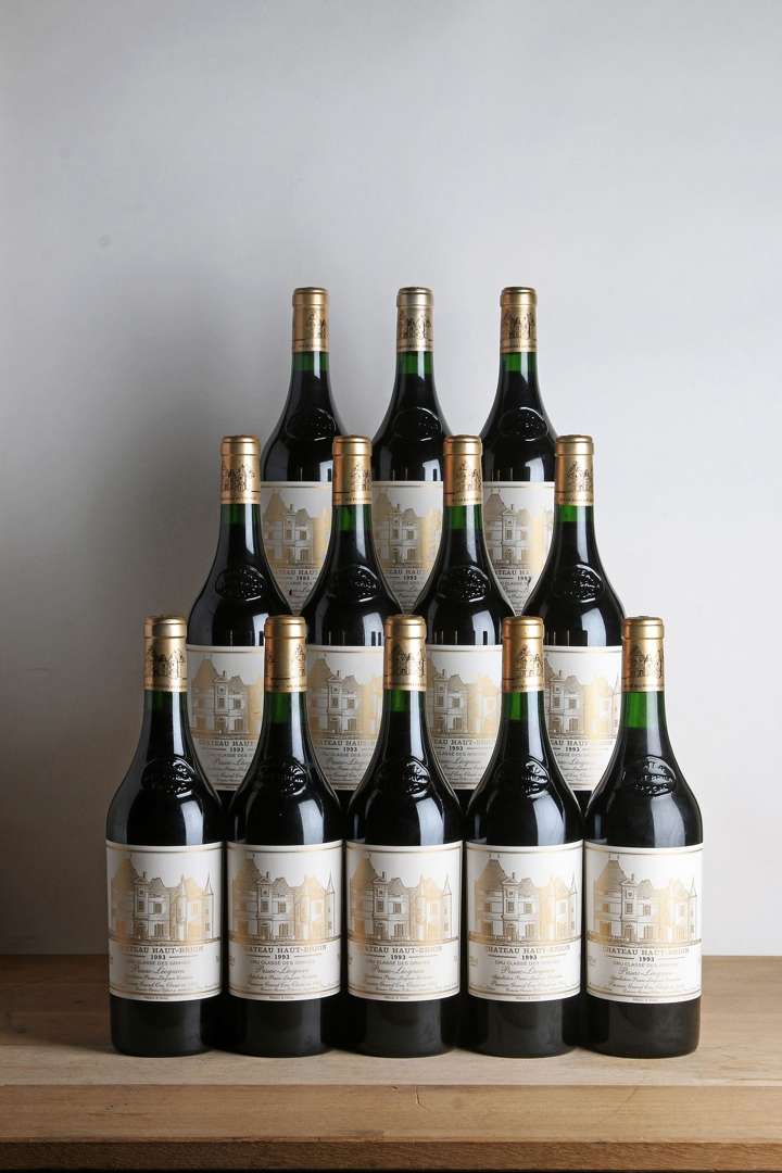 12 B CHÂTEAU HAUT-BRION (Caisse Bois d'origine avec pavillon supérieur abimé) (2 à 2| 1 à 2,2 cm| 1 e.a. et 1 e.t.a.) - 1993 - GCC1 Graves