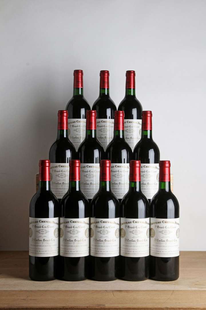 12 B CHÂTEAU CHEVAL BLANC (Caisse Bois d'origine avec pavillon supérieur abimé) (1 B.G| e.t.h. légères à e.t.h| quelques marques capsules avec 1 accroc côté) - 1993 - GCC1A Saint-Emilion