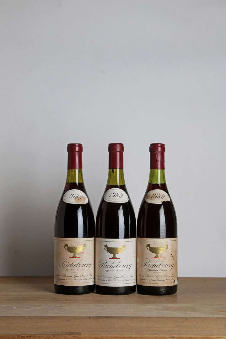 3 B RICHEBOURG (Grand Cru) (2 à 2,5 et 1 à 3 cm| e.t.h. dont 2 e.l.a. et 1 e.a| 2 clm.s| 1 clm.a.) - 1983 - Domaine Gros Frère & Sœur