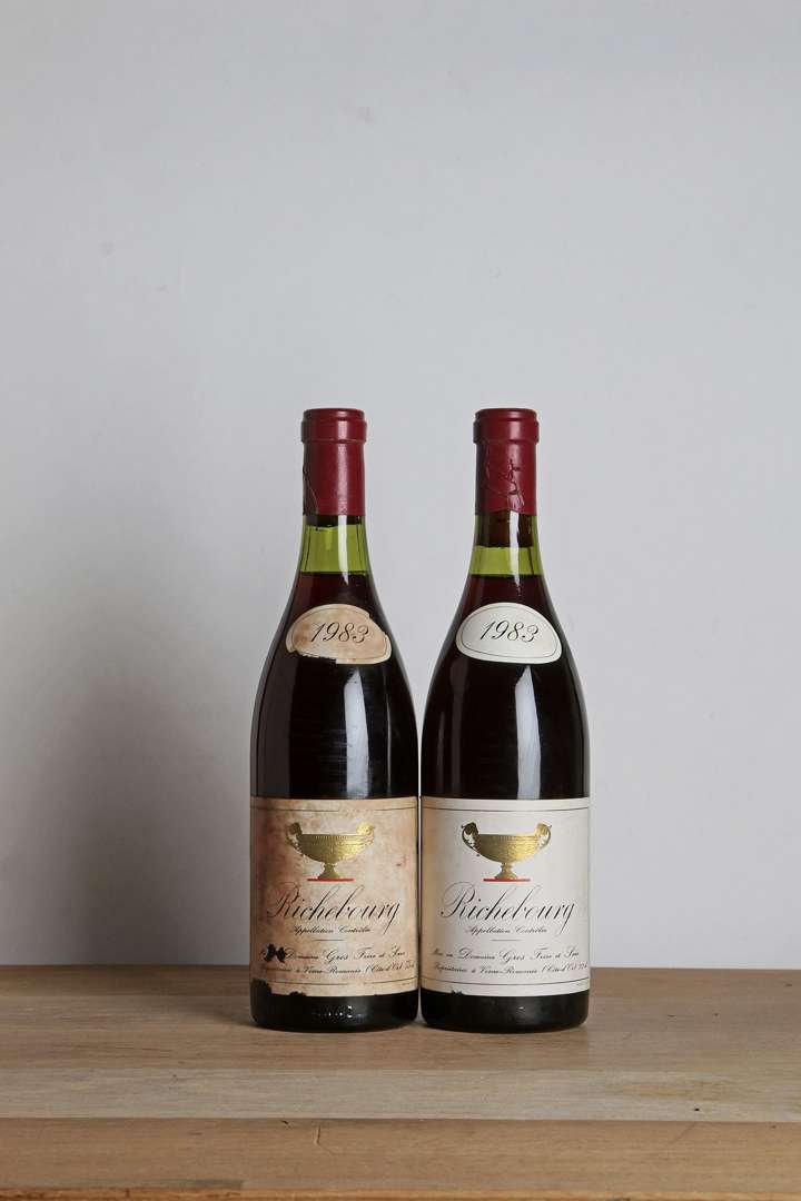 2 B RICHEBOURG (Grand Cru) (1 à 1,5 et 1 à 2,2 cm sur bouchons fragiles engagés| 1 e.l.a| 1 e.t.a| 1 clm.s. et 1 clm.a.) - 1983 - Domaine Gros Frère & Sœur