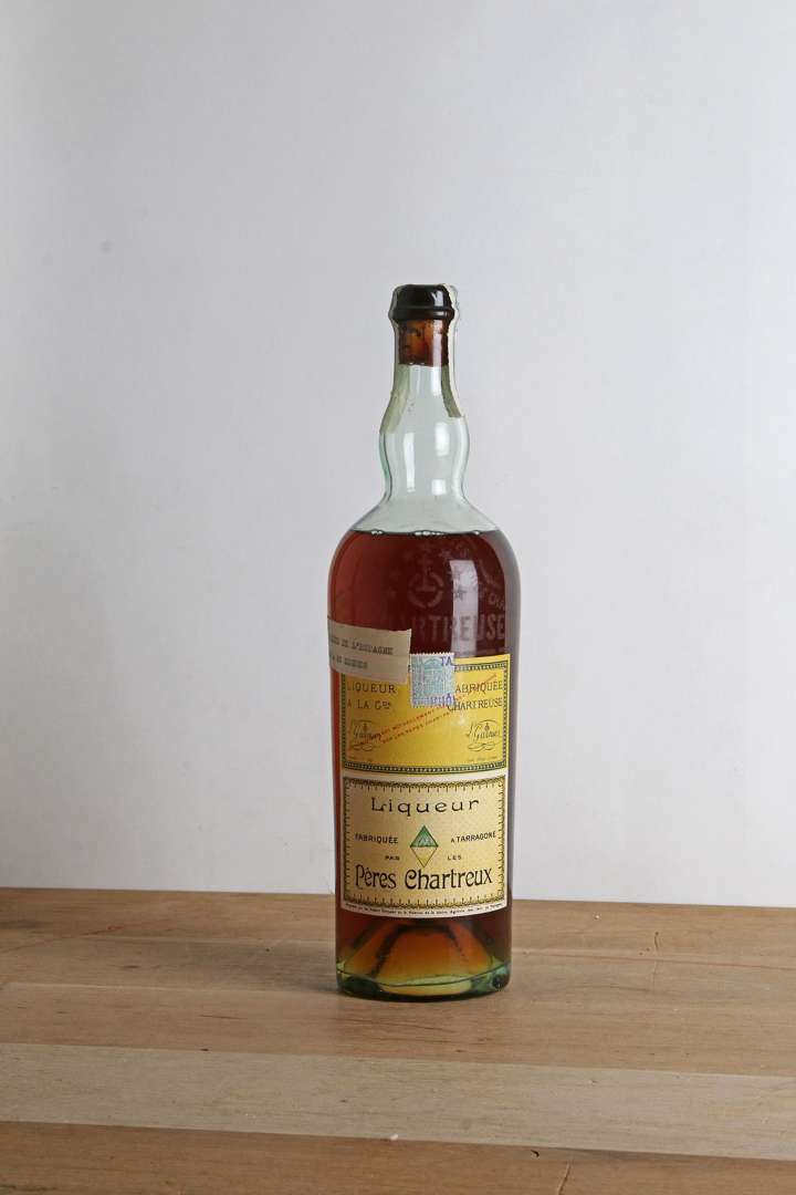 1 B CHARTREUSE JAUNE TARRAGONE PÉRIODE 1930-1945 100 cl (8 cm| timbre fiscal espagnol) - NM - Pères Chartreux