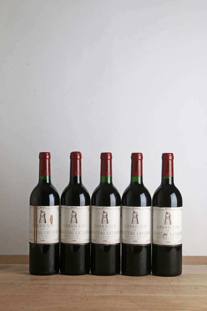 5 B CHÂTEAU LATOUR (1 B.G.+| 1 B.G| 2 e.l.s| 1 e.t| 2 e.a| 1 capsule bombée) - 1988 - GCC1 Pauillac