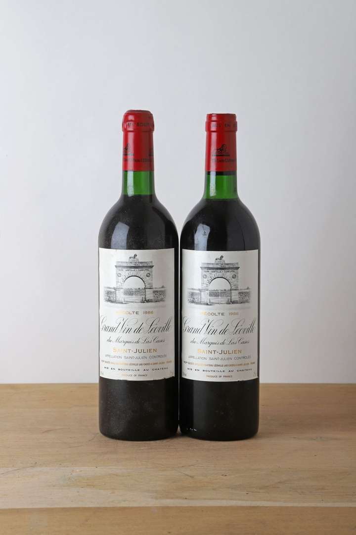 2 B CHÂTEAU LÉOVILLE LAS CASES (1 B.G| 1 T.L.B.+| e.l.a| 1 capsule légèrement bombée) - 1986 - GCC2 Saint-Julien