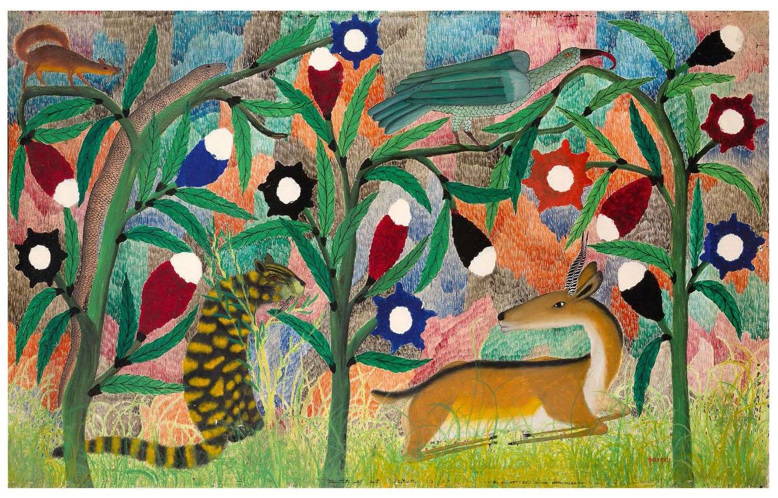 Antilope et oiseau, léopard