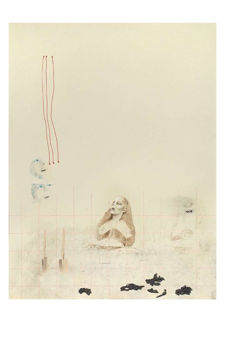 Mixed media, drawing and collage on paper, signed and dated lower right, countersigned on reverse