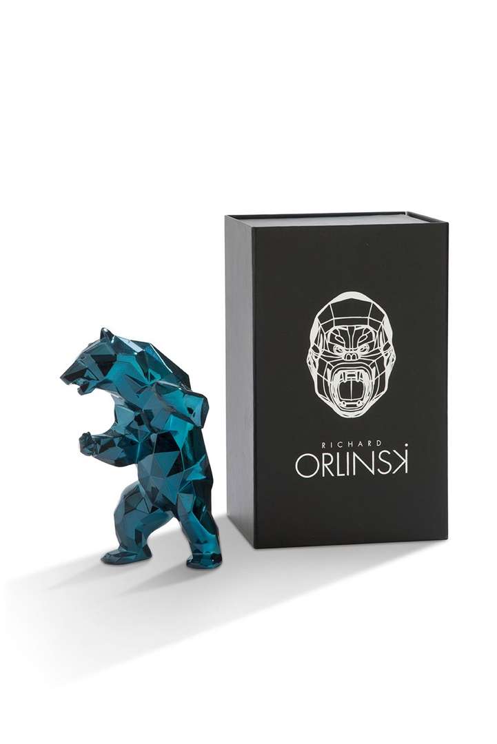 Sculpture en résine bleu pétrole. Dans sa boîte d'origine.