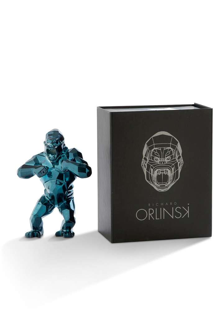 Sculpture en résine bleu pétrole. Dans sa boîte d'origine.