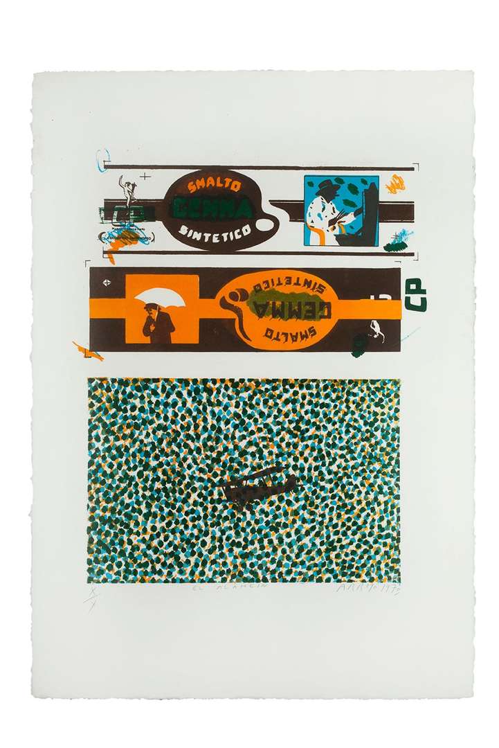 Lithograph signed and dated "Arroyo 1970" lower right. Situated at the bottom "El Alamein" and justified X/X lower left. ~