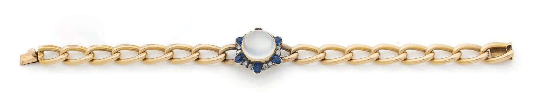 A moonstone, diamond, sapphire and gold bracelet