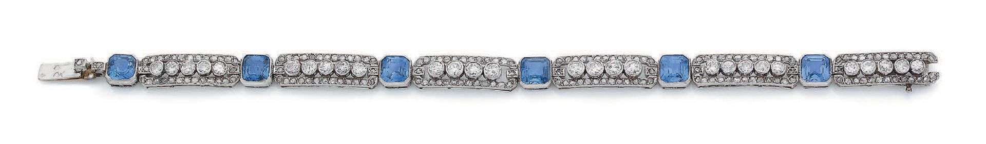 A sapphire, diamond, gold and platinum bracelet