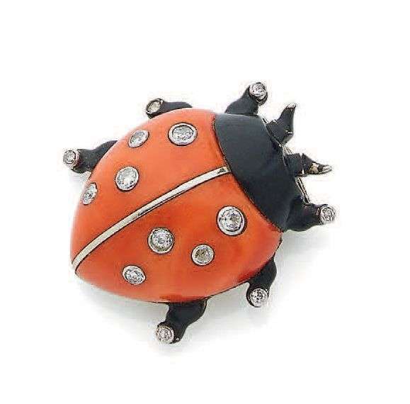 Corail et émail noir, diamants taille ancienne