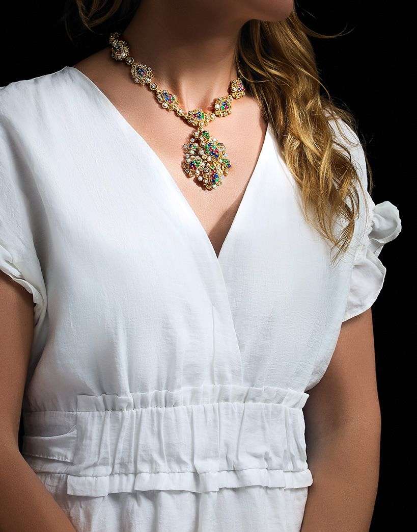 Rubis cabochons, saphirs cabochons, émeraudes cabochons et diamants taille brillant