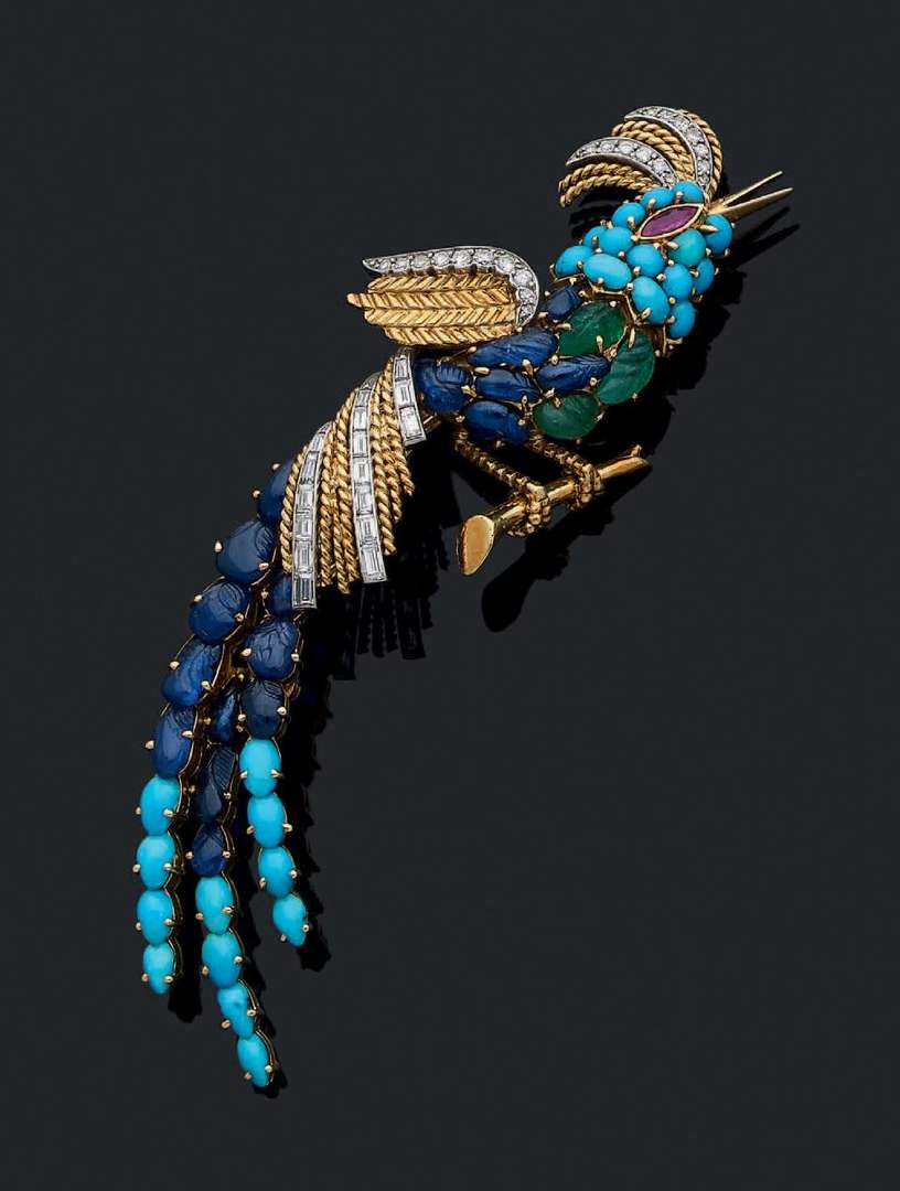 A turquoise, ruby, sapphire, emerald, diamond and gold clip, signed Mauboussin