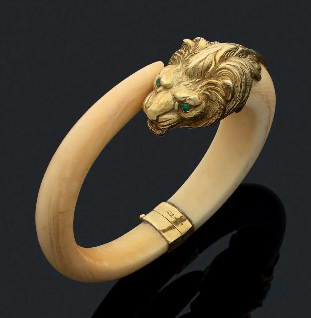 An ivory, chrysoprase and gold bracelet, signed Van Cleef & Arpels
