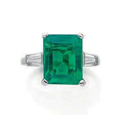 An emerald, diamond and platinum ring, signed Van Cleef & Arpels, report
