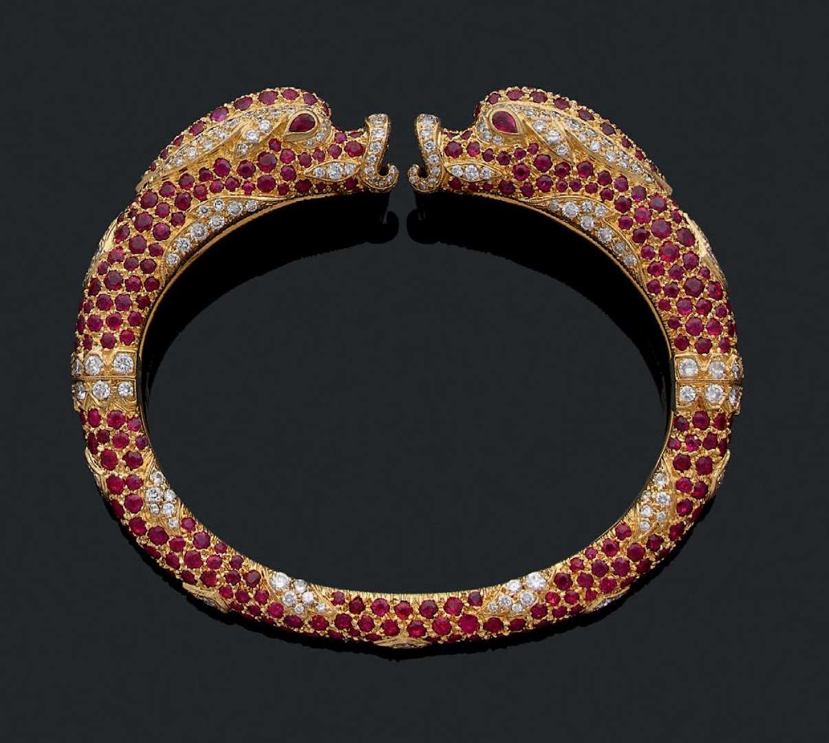 Jeanne Toussaint, head of creation at Cartier, preserved the spirit and structure but diversified this rigid chimera bangle throughout the 20th century.