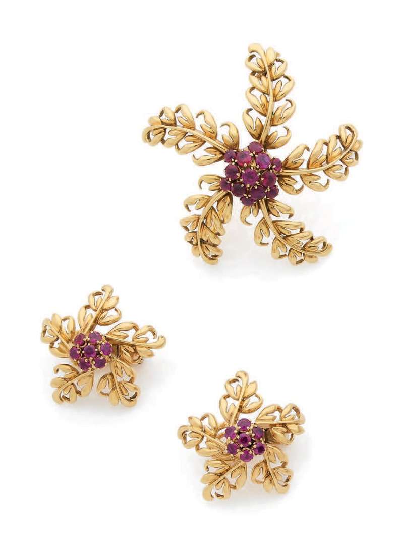 A ruby and gold set, signed Boucheron