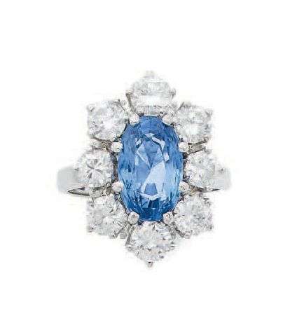 Saphir ovale et diamants ronds taille brillant