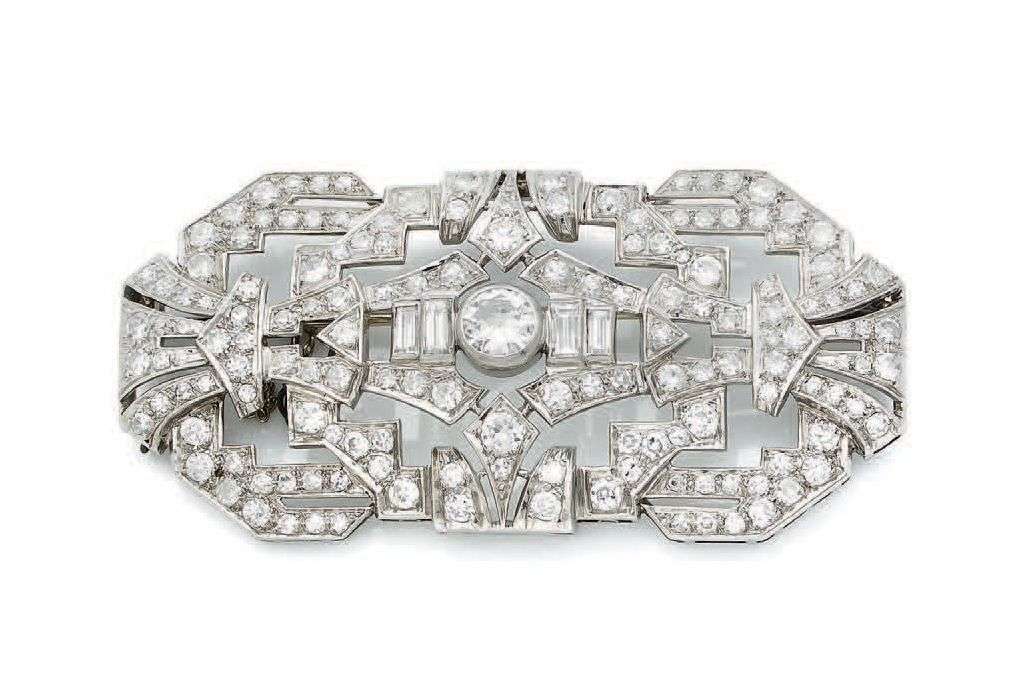 A diamond, platinum and gold brooch