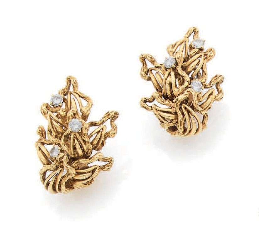 Diamond and gold earrings, signed OJ Perrin