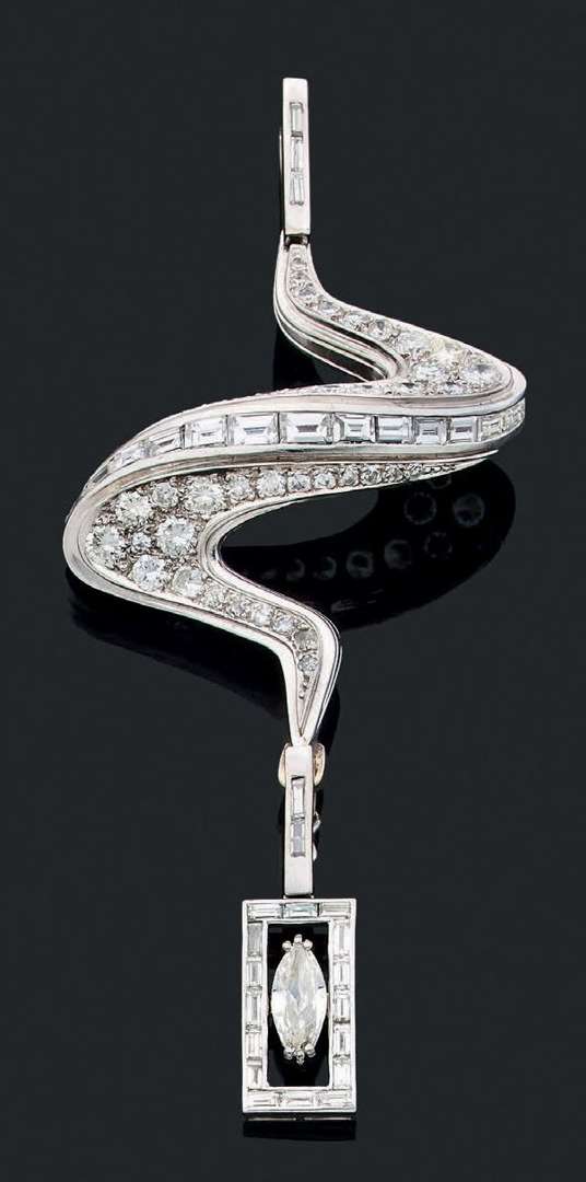 Diamant navette, diamants ronds taille brillant et diamants baguettes
