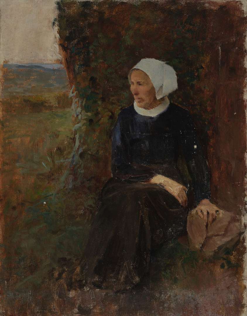 Bretonne assise dans un paysage