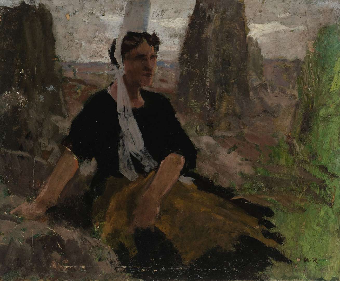 Oil on canvas, signed with the artist's initials lower right, sketch of seaside on the reverse