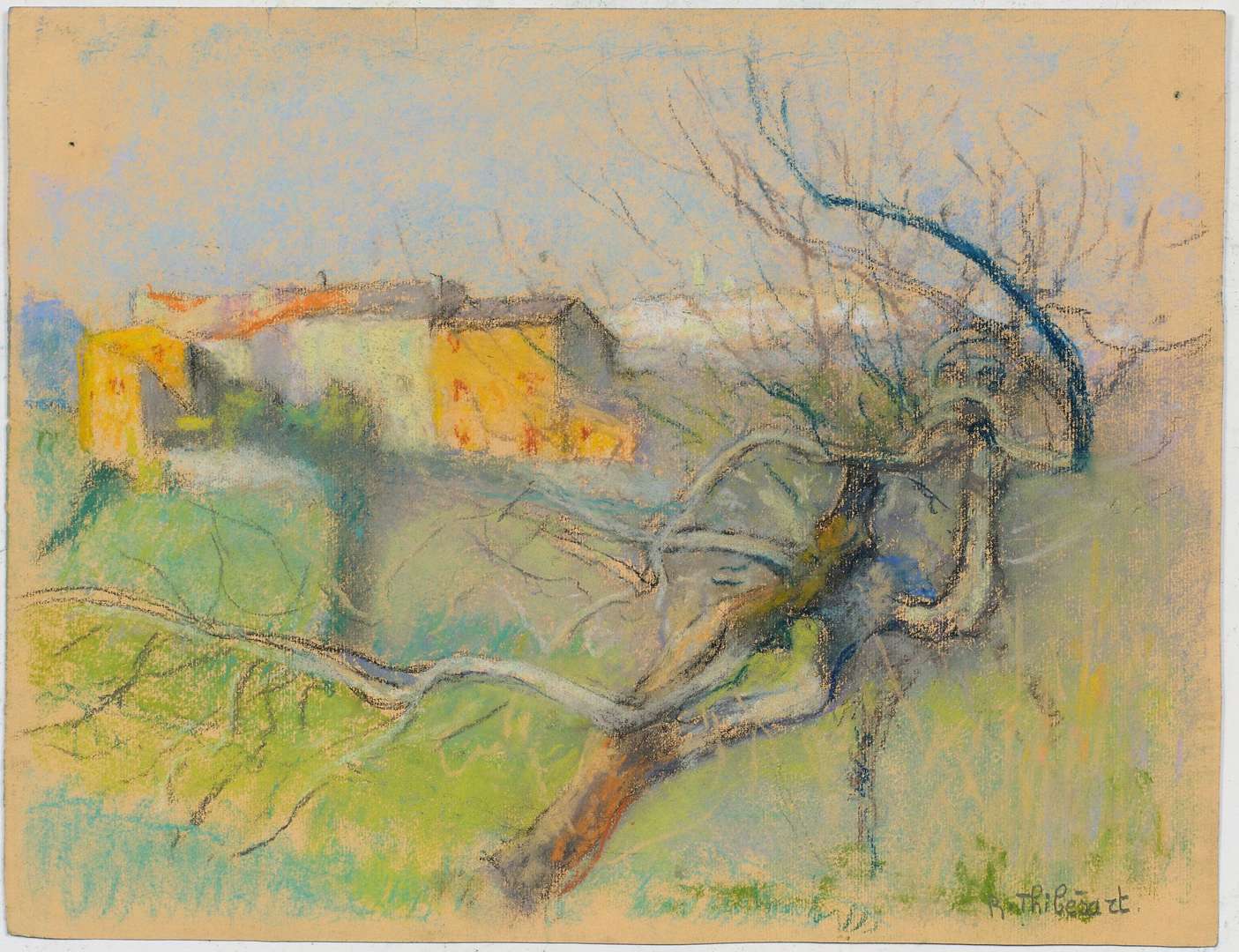 Paysage du Sud de la France - Maisons derrière le vieil arbre